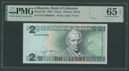 Lietuva 2 litai 1993 DAC0000994 PMG65