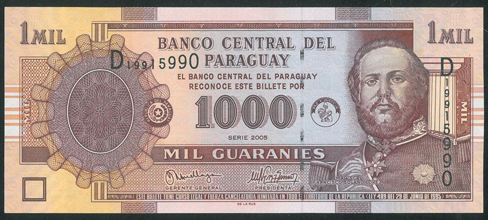 Paragvajus 1 000 gvaranių 2005 UNC